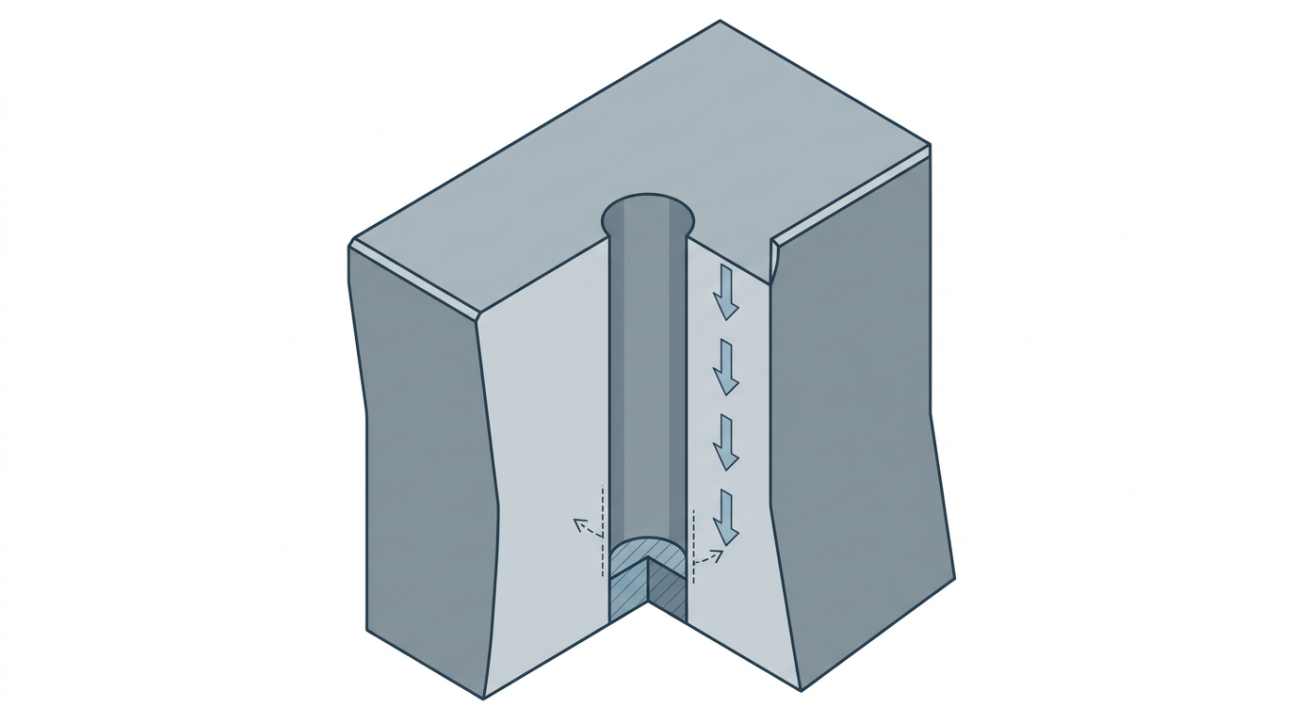 Если заготовка имеет наклонный торец, прямое засверливание пилотного отверстия категорически запрещено: сверло мгновенно уведет по уклону. В таких случаях поверхность предварительно фрезеруется торцевой фрезой строго перпендикулярно будущей оси отверстия.