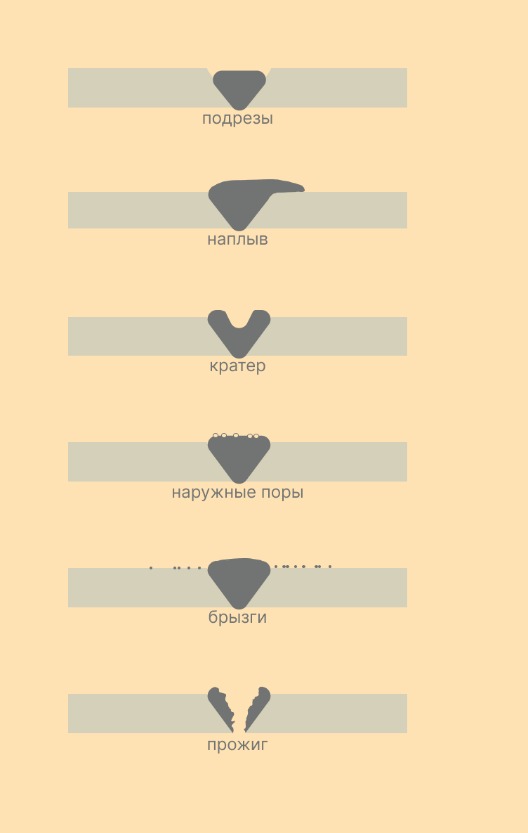 Подрезы — это углубления вдоль границы шва из-за слишком высокого тока или неверной скорости движения электрода. Подрезы ослабляют соединение: металл становится тоньше, а нагрузка на него растет.